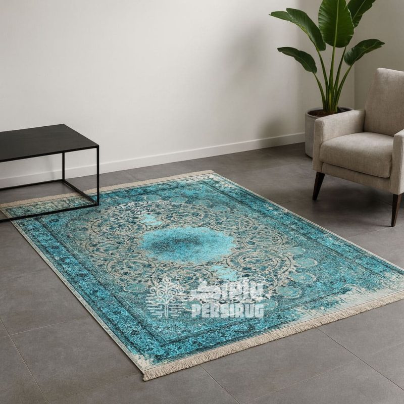 • 🔹 ساختار سه‌لایه — سطح مخملی چاپی + نمدِ چندلایهٔ نرم + پشت‌کارِ ضدلغزش؛ ایستایی عالی روی پارکت/سرامیک.