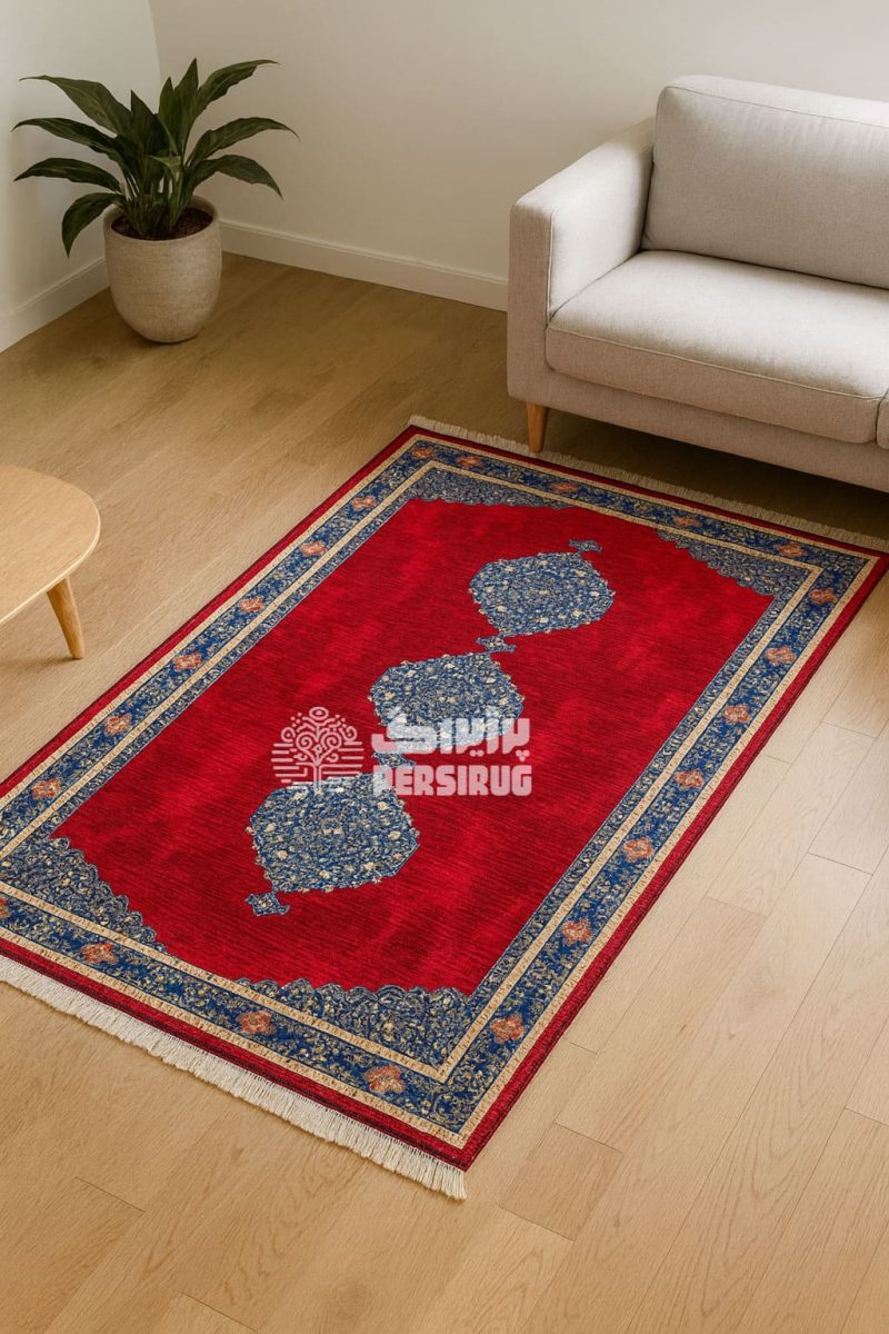 - 🔹 ساختار سهلایه — سطح مخملی چاپی + نمدِ چندلایهٔ نرم + پشتکارِ ضدلغزش؛ ایستایی عالی روی پارکت/سرامیک.