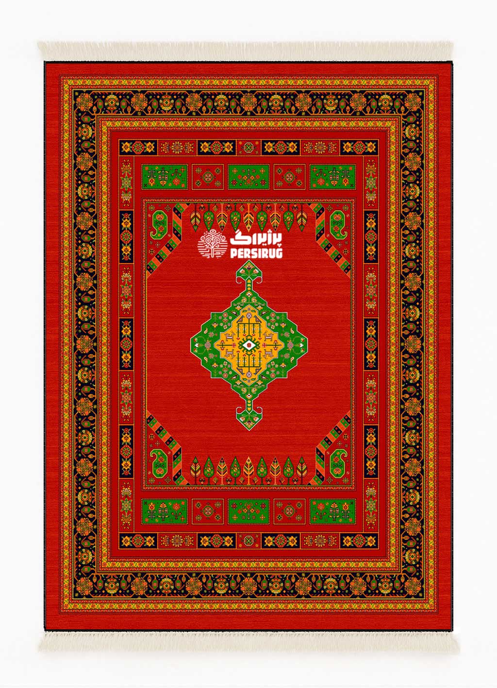 - 🔸 مرکز (ترنجدار): ترنج هندسی سبز–طلایی الهامگرفته از نقوش قشقایی.